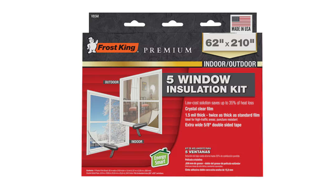 James recommends this shrink-wrap kit for quickly and inexpensively sealing windows. Believe it or not, applying a product like this to your windows when it's cold can ensure 35% less heat loss! The crystal-clear film won't impede your view, so you can keep tabs on what's happening outside your door.